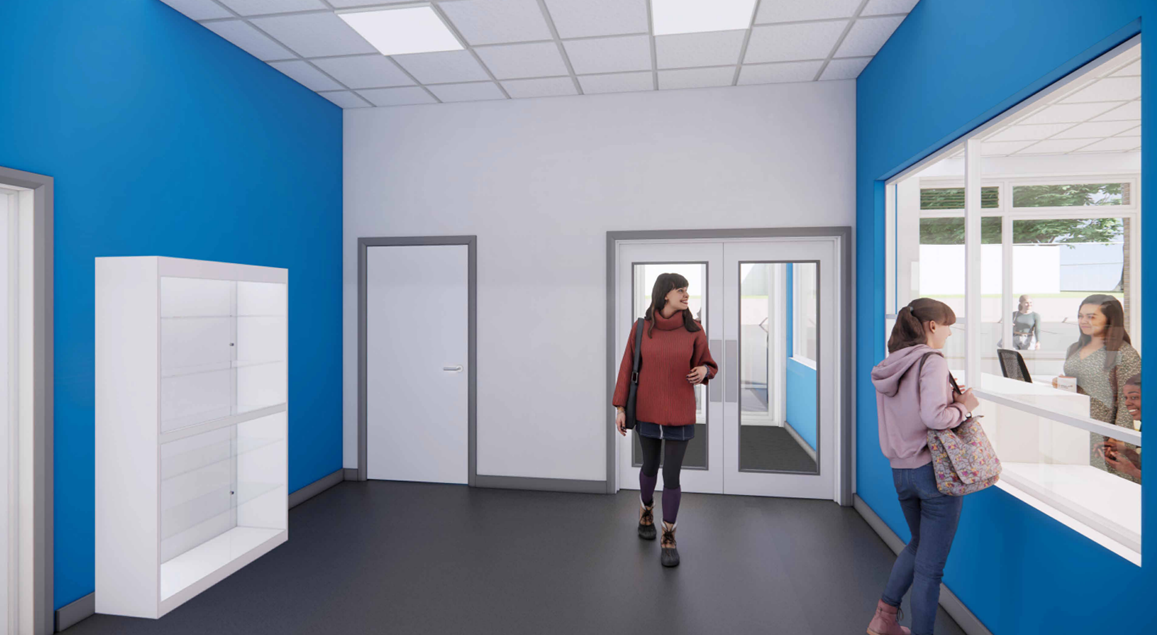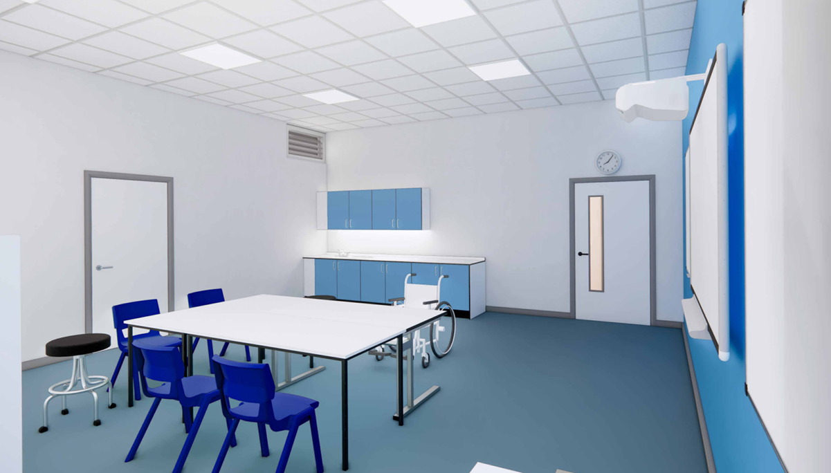 The entrance lobby is bright and clearly laid out, with a dedicated reception desk and secure access into the school. Classrooms are spacious and purpose-designed for small group specialist teaching, with wide doorways, level access throughout, and plenty of natural light.