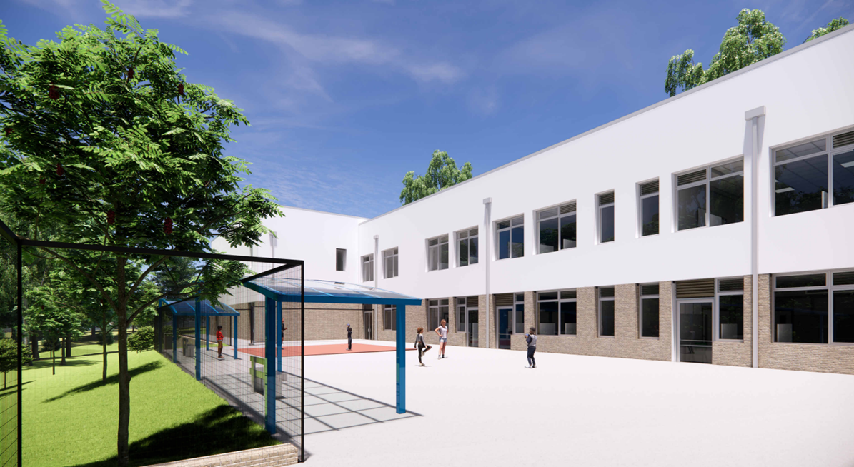 The landscaping around the new school has been carefully planned, with reinforced grassed areas for outdoor learning and play, a refreshed peace garden, and new pedestrian routes around the site. Dedicated drop-off facilities have been designed with our families in mind, keeping arrivals and departures safe and straightforward.