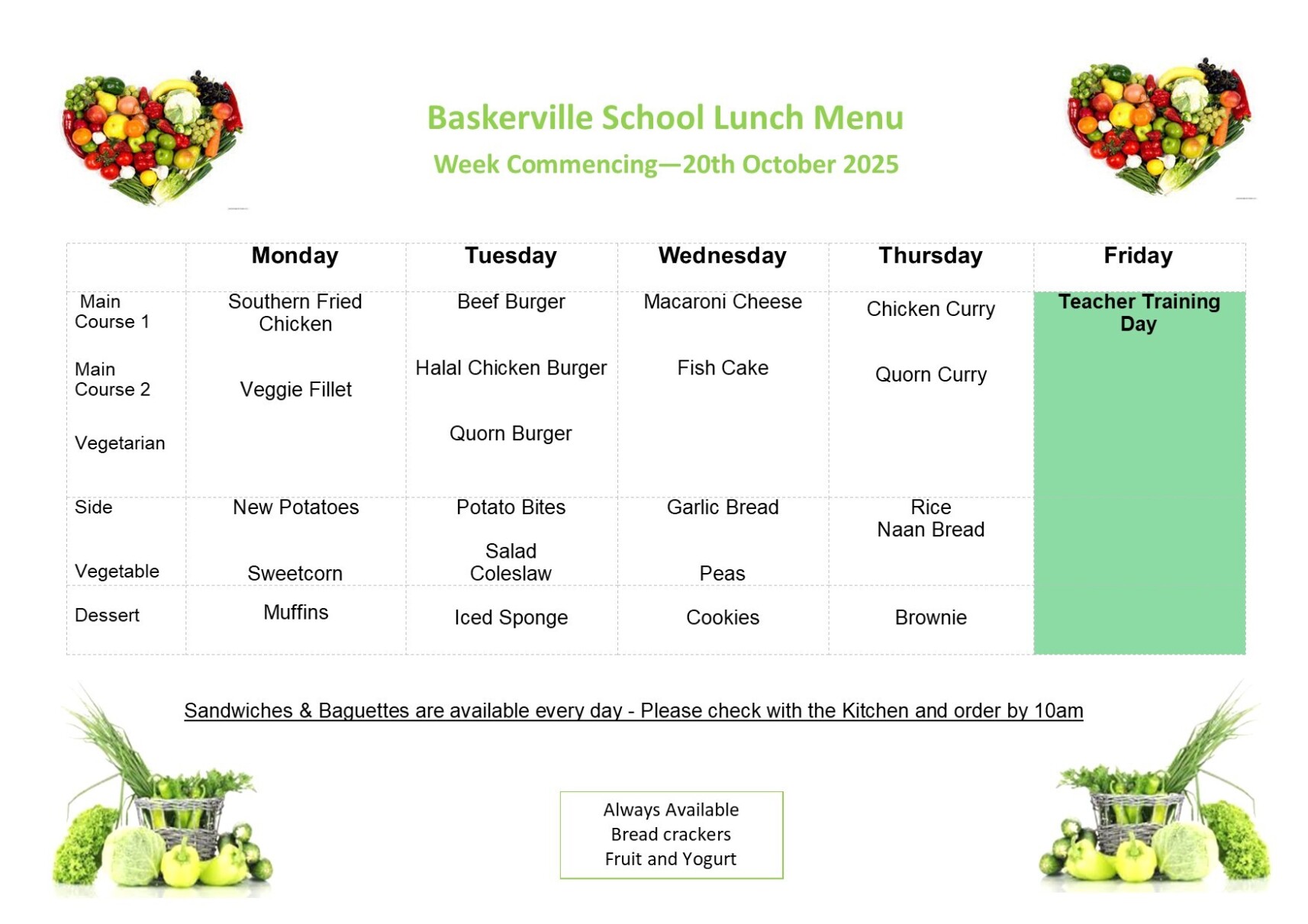 Baskerville School is accredited with the Healthy Schools Award. Students are encouraged to eat healthy foods and consequently, we positively discourage students from bringing certain food items into school, for example, crisps and sweets. Fizzy drinks and chewing gum are not allowed in school.