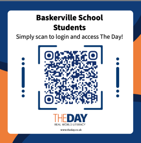 You can support your young person's learning by accessing The Day at home using the QR code below. Simply scan the code to log in and explore the daily articles together. Teachers will use these articles as part of literacy lessons and tutor time activities at school, so discussing them at home is a great way to reinforce learning and start conversations about the world around us. We encourage you to ask your young person about what they've been reading and share your own thoughts about the topics covered.